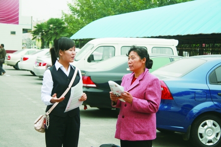 日前,许昌市农信办组织当地农信社派出人员将办公地点移至各高校,加强金燕卡宣传、推广工作。图为宣传人员向新生家长介绍金燕卡的优势。刘聚堂 王松雷 摄