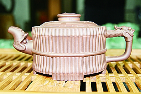 图10:范黎明大师作品“双线竹鼓” 范黎明在领悟传统文化的基础上创新求变,无论造型还是装饰都有独特风貌,典雅而风华朴茂,将那广漠田野的自然风光融入了自己壶艺作品的内涵,并乐在其中。