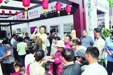安化黑茶:展会现场摊位众多,但是湖南黑茶特别显眼,原来湖南安化黑茶厂家包下了所有的特展展位,成了安化黑茶特展会,“白沙溪”、“怡清源”等企业展位都人流不断。5月28日上午,安化县政府及企业举行了黑茶推介会。广大市民不但可以现场品饮安化黑茶,还可以就怎样挑选湖南黑茶等问题与专家进行交流。同时,湖南省怡清源茶业有限公司带着中国第一款生态美容养颜茶——“黑玫瑰”及众多好黑茶第一次亮相济南茶博会,并带来一整天精彩的湖南黑茶茶艺表演。推介活动气氛热烈,高潮不断。此次的茶博会将助泉城的安化黑茶市场再次升温。怡清源山东市场区域经理张宁说,“我们十分看好山东市场,我们会让更多的人了解安化黑茶,爱上安化黑茶。”