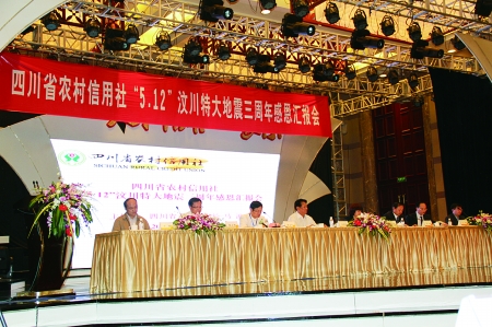 5月24日下午,都江堰,四川省农村信用社“5·12”汶川特大地震三周年感恩汇报会举行。“危难之中见本色。四川省农村合作金融机构体现了高度的社会责任意识和大局观念,为全国农村合作金融机构赢得了形象,树立了品牌,是一笔宝贵的精神财富。”中国银监会合作金融机构监管部主任姜丽明评价道。