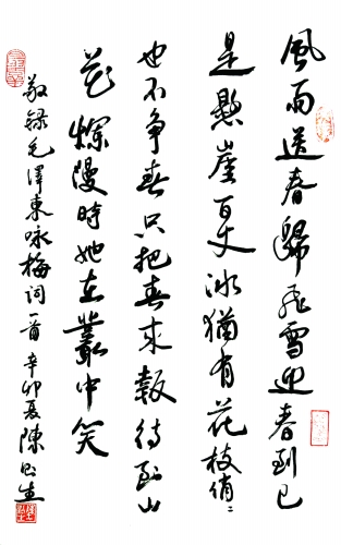 王冕的《墨梅》诗,抒写了梅花虽没有娇妍的外表,却是那样的神清骨秀、幽独超逸;它不想用鲜艳的色彩去吸引人,求得人们的夸奖,只愿散发一股清香,长存天地之间,和毛泽东《卜算子·咏梅》中“俏也不争春,只把春来报”的诗句,正有异曲同工之妙。
