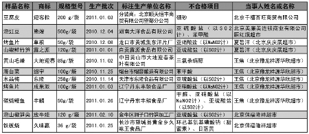 北京市工商管理局,在近期的食品抽检中,发现不合格样本11个(不合格食品名单见附表),涉及到11个厂家和商品品牌,这些商品都被进行了下架处理。