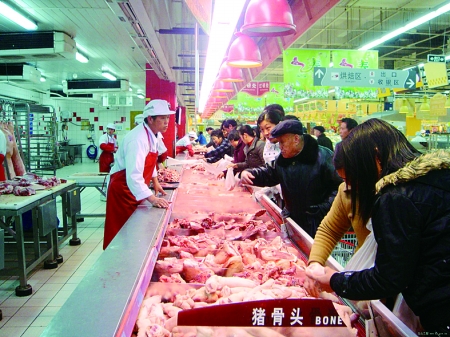 本报讯 6月27日至7月3日当周全国鲜猪肉批发价格继续上涨,已达到每公斤25.51元,再次刷新2004年以来新高。至此,猪肉批发价今年上半年以来涨幅高达35%。国务院总理温家宝表示,市场内开设了国家储备肉销售柜台,储备猪肉每斤15元,比鲜肉价格便宜四五元钱。他说,最近就是猪肉价格贵了。得把这个周期过去。再过几个月就下来了。