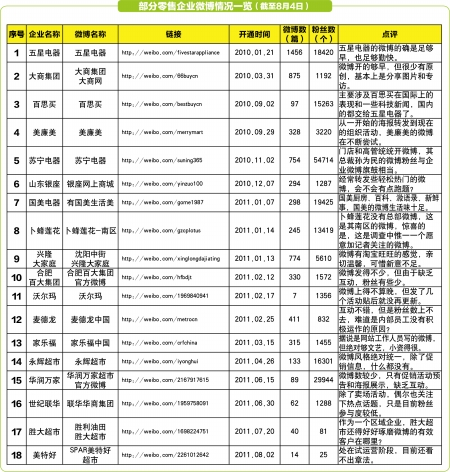 微博对企业传播和营销的价值正在凸显,但仍有大批零售企业乐于在线下享受“寂寞”。