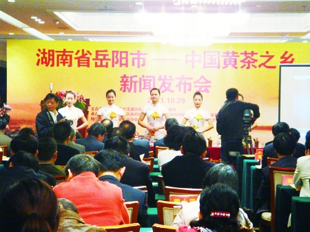 岳阳是黄茶之冠——君山银针的主产区。2010年,岳阳市生产、销售黄茶1.5万吨,产值5.6亿元,均占全国黄茶产销量的六成以上。作为中国十大名茶之一,君山银针被国内茶界专家评定为中国黄茶标志性品牌。10月12日,中国茶叶流通协会授予岳阳市“中国黄茶之乡”称号。与此同时,君山茶业进一步创新黄茶型紧压茶,在成功推出君山黄金转、黄金饼等紧压茶的基础上,推出更多规格、形式的黄茶紧压茶产品。