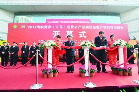 本报讯 12月2日,由中华全国供销合作总社、江苏省人民政府联合主办的2011海峡两岸(江苏)名优农产品展销会暨产销对接洽谈会在江苏南京开幕。总社党组书记、理事会主任杨传堂,江苏省省长李学勇,共同为农展会开幕剪彩。总社党组成员、理事会常务理事于培顺,江苏省委常委、副省长黄莉新,台湾农产品流通经纪人协会理事长林瑞民在开幕式上致辞。江苏省人大常委会副主任丁解民、省政协副主席包国新出席开幕式。