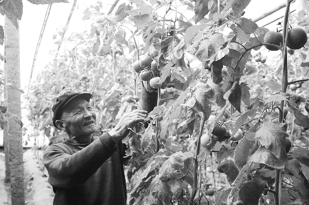 山东省苍山县农村信用合作联社累计发放蔬菜产业贷款8.2亿元,不断拉长蔬菜产业链条,使“山东南菜园”得到有效扩张,提高了规模效益和产品附加值,增加了农民收入。图为苍山县兴明乡曹湾村村民正在喜摘西红柿。王发明 图/文