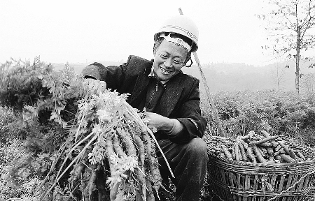 12月6日,四川省内江市东兴区富溪乡白马滩村原生态胡萝卜喜获丰收,当地村民冒着冬日的小雨抢收胡萝卜准备上市。据了解,内江市东兴区富溪乡地处沱江畔,大片大片的沙地十分适宜胡萝卜生长。该乡因势利导,并积极应对市场对绿色生态食品的需求,引导村民禁用农药,大量使用农家肥种植原生态胡萝卜,所产胡萝卜色泽鲜艳、脆甜可口,十分畅销,给农民带来了可观的经济效益,平均每亩可收益5000余元。 李建明 摄