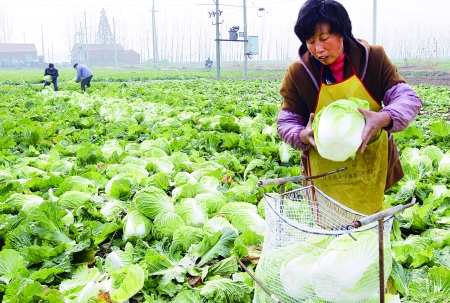 近日,由江苏省淮安市网民自发组织的“爱心助农,把大白菜带回家”公益活动正式启动。入冬以来,“盱眙县万亩大白菜0.02元一斤仍无人问津”的消息经媒体报道后,淮水安澜网60余网民发帖呼吁全社会认购“爱心菜”,得到了18万余网民的点击支持。4日上午,当地100万斤大白菜运抵淮安后,以每斤0.15元至0.2元的价格被网民抢购一空。周海军 摄 (cnsphoto 供图)