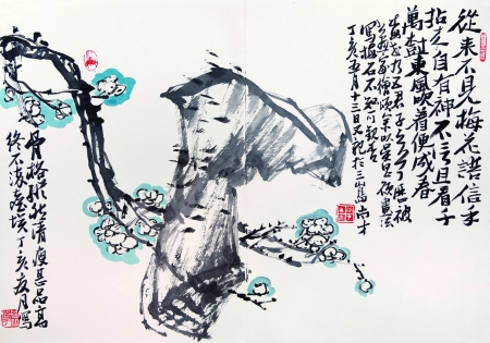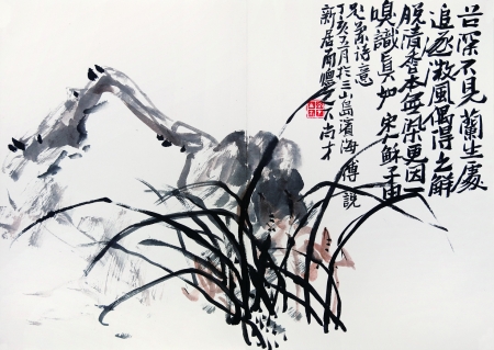 对于尚才先生绘画,从其不多的作品看,其有着扎实的素描造型功底,而其创作多为与书法同源的笔墨花鸟。如其墨竹、墨荷、墨菊等。应该说是其摄影的造型素养和书法的笔墨功夫为其绘画从笔墨运用、骨法用笔到整体作品的视觉构图的经营位置等打下了独有的坚实基础。其洗练的线条一方面源于对八大、板桥以至吴昌硕、白石翁的学习,也是其深厚书法墨韵的自然化用。其大胆留白,构图奇逸的画面营构无疑得益于其常年摄影对素材的敏锐归纳和视觉选择。艺术的博通也有助于其独特艺术品位的提高。古士大夫有诗书印画四绝的风尚,而尚才先生则是书、学、影、画为四通,此亦时代新文人艺术家之品格乎?