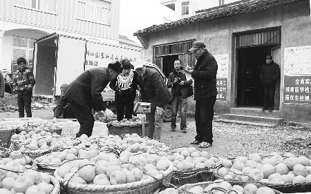 为帮助黄岩农民解决槾橘“卖难”问题,浙江省台州市供销合作社牵头组织黄岩区供销合作社和台州新田园公司上门收购槾橘。连日来,该公司已向头陀镇3个村庄的农民收购槾橘50多吨,并通过26家门店展卖,举办了10余次广场直销活动。公司负责人表示,销售所得扣除运输成本外,将全部返还给农民。沈玲 摄