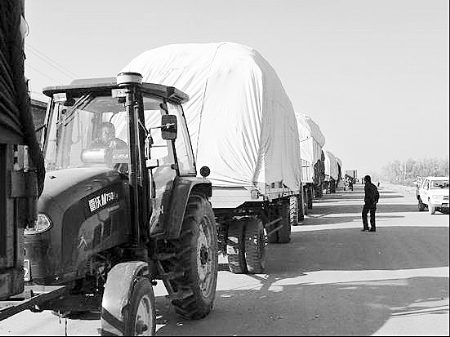 中国棉花信息网专讯 今年,新疆生产建设兵团农七师种植棉花采取高科技种植管理模式,加之秋季气温偏高无雨期长的优势,全师各地棉花都喜获丰收,每亩单产普遍超过400公斤以上。各地交棉热情高涨,仅新疆伊犁州奎屯市的3个国储棉定点库,日收国储棉近万吨。图为丰收后的棉农怀着喜悦的心情,积极向轧花厂交售籽棉。
