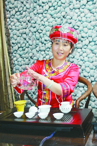 除了有土家族茶文化风格,茶楼还提供各类品种的茶。考虑到恩施的消费情况,一般的茶20元一杯,恩施玉露茶60元一杯,因为恩施玉露是手工茶,成本高的茶价位也就相应的要高。根据客人的服务需要,茶楼有专门泡茶的茶艺师,他们为客人泡的茶味道都很好。姚云芳说:“虽然恩施是茶生产大区,茶叶生产量很大,茶园也很多,但是茶楼却比较少。将恩施土家族文化传播开来,这也是茶楼的一大使命。做茶楼之前,我们论证了茶楼在商务这方面的生意是可行的。”