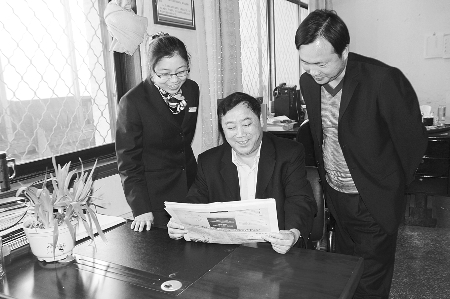 图为该联社信息宣传骨干正在阅读《合作金融》周报,学习写作技巧,讨论学习心得。赵锋涛 摄