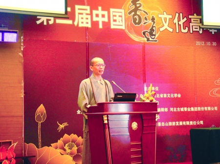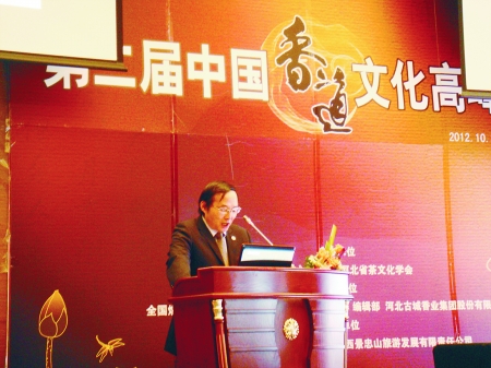 为了全面开启中国传统香文化活动大门,培养人们习香道、演香艺的兴趣,搭建全国香文化爱好者交流平台,大力倡导弘扬民族传统文化理念,整合力量,深化研究,为推动中国香文化的产业发展,以及为香文化的传承与创新作出积极贡献之目的,以“香与心灵健康”为主题的“第二届中国香文化高峰论坛”于2012年10月30日上午在河北省唐山市迁西县景忠山隆重举行。来自北京、上海、天津、河北、福建、陕西、江西、浙江等200多位香文化爱好者及国内著名香文化专家参加了此次盛会。