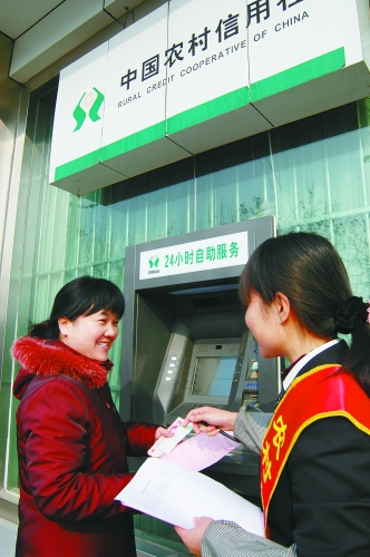 在这些商户的“便民宝”机具上,农民缴纳新农保和社会养老保险,领取粮食补贴,查询账户余额,甚至申请小额贷款,凭一张农商行的圆鼎借记卡就能完成——这也是该行今年全面实施的农村“15分钟金融服务圈”计划,即农民从家出发,最长走15分钟的路程就能享受到金融服务。