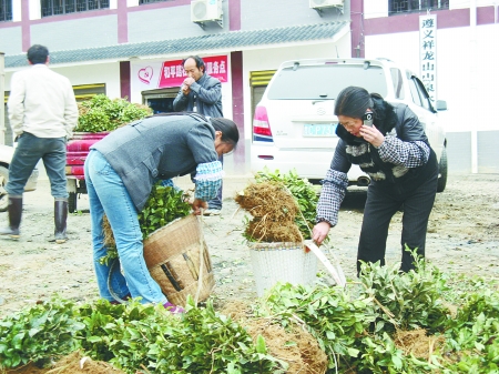 贵州省凤冈县今冬明春计划新发展标准化茶园4万亩,自育扦插茶苗1300余亩,保障每年新栽茶园以4万亩的速度推进。连日来,凤冈县各个种茶乡镇到处都是一派繁忙的景象,广大茶农群众正在抢季节,抓时间,争速度,切实采取积极有效措施,认真做好茶园标准化建设的种植工作。图为龙泉镇茶农正在领取茶树苗。