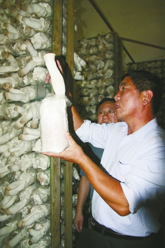 “2007年组织成立了冀乐食用菌专业合作社。为了适应食用菌产业的发展,2011年,灵寿县冀乐食用菌专业合作社联合“信诚”、“丰汇”等7个食用菌专业合作社,成立了灵寿县食用菌专业合作社联合社,社员总数275个,涉及近8个乡镇60多个村。”在杏鲍菇培育车间里,冀乐食用菌专业合作社理事长李俊九向记者介绍,“按照‘公司+专业合作社+农户’的运行模式,注册了‘冀乐’商标,产品主要销往山西、山东及广州、北京、天津等省市。2011年,冀乐食用菌专业合作社销售食用菌产品2230吨,实现销售收入3120万元,利润达到780万元。合作社的飞速发展,辐射了周边20余个村,拉动了一方产业,为整个灵寿县食用菌产业的发展奠定了基础。”