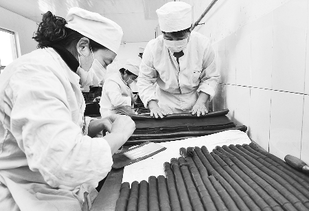 随着新年的临近,山东邹平县南部山区西董街道鹤伴果业合作社的果脯、果丹皮订单明显增多,山果加工厂内一片忙碌景象,合作社利用从当地山村收购来的山楂、苹果,经漂洗、蒸煮、压皮、切割、包装等步骤,生产出酸甜适中、柔软爽口的果丹皮,产品销往华东、华北等大型超市,深受市场欢迎。据悉,该合作社发展对接的山果种植基地,每年可加工山果近千吨,生产杏脯、果脯、果丹皮等产品,果农年均增收2万余元,同时解决山区农民交通不便卖果难和部分山村妇女的就业问题。图为合作社社员在进行山果加工。董乃德 摄(cnsphoto供图)