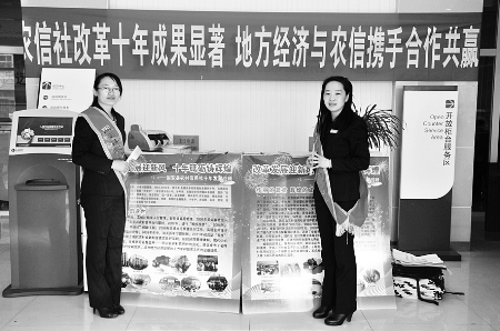 为贯彻十八大精神,促进农信科学发展,向社会各界展示固安农信十年来的发展成果,1月8日,河北省固安县农村信用合作联社在全辖25个网点开展了“农信成果十年展”主题宣传活动,采取多项措施,确保活动顺利开展。图为宣传活动现场。刘翀充 摄