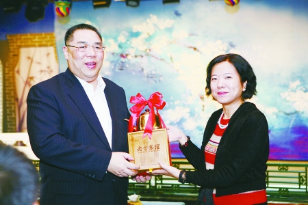 崔特首一行在尹智君董事长的引领讲解下,参观了老北京传统商业博物馆和老尹记茶庄。在浓郁的京味吆喝声中,尹智君董事长为崔特首还详细介绍了十三家老北京店铺面塑微缩景观及招幌。在“老二分”大碗茶摊前,崔特首端起大碗香茶,品饮起来。这是崔特首第二次品饮大碗茶,2011年10月份在澳门举办的第16届澳门国际贸易投资展览会上,崔特首曾经莅临老舍茶馆展位并品尝大碗茶。在百件老物件展览前,崔特首仔细地观看每一件老物件,并与尹智君董事长聊起了家常、回忆起小时候的故事。手工艺展示区前,崔特首对吹糖人产生了浓厚的兴趣。当看到吹糖人的师傅很快用糖吹出一个活灵活现手拿金箍棒的孙悟空时,崔特首情不自禁地鼓起掌来。老北京人最爱的玩具——空竹也让大家兴致颇高,王宁书记即兴抖起了空竹,向崔特首介绍空竹的玩法。品尝过京味特色美食后,崔特首观看了古彩戏法,杂技巧耍花坛、《力量》,长嘴壶茶艺表演,变脸等精彩的节目。临行前,尹智君董事长向崔特首赠送了老舍茶馆大铜壶、盖碗礼盒和京味书籍。