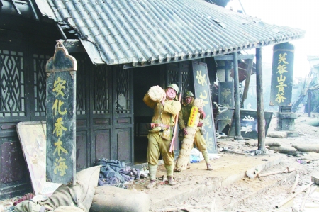 本报讯(驻湖南记者 黄德开)“长沙城炮声隆隆,浓烟滚滚,火光冲天,安化香木海茶庄一片狼藉,店里珍贵的茶具和安化黑茶被洗劫一空,日本鬼子趁机虏走了店里的千两茶……”这是2013年1月25日在湖南长沙市月亮岛拍摄的电视连续剧《长沙保卫战》现场的一个镜头。
