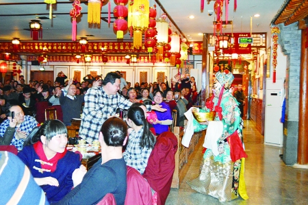 老舍茶馆集“餐、茶、戏、礼”四大业态为一体,尤以特色演出闻名遐迩。庙会期间除每晚综艺演出外,特别增加了相声、曲艺、昆曲等下午场专场演出。特邀王金凤、赵俊良、马玉萍等多位国宝级表演艺术家登台献艺,现场座无虚席,气氛异常火爆。微博网友纷纷晒帖,即时分享了老舍茶馆庙会精彩见闻。