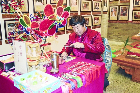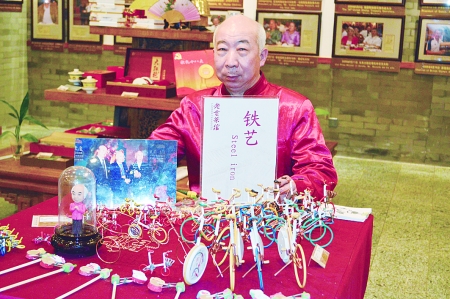无论是铁艺、糖人,还是空竹、剪纸,新春庙会期间各个民俗手工艺互动展台都热闹非凡。看似粗拙的铁丝在铁艺师傅的一双巧手下变成了一个个造型精美的艺术品;金黄油亮、栩栩如生的十二生肖“糖人儿”作品赢得大家的交口称赞。面对客人的求教,糖人儿师傅耐心介绍着操作过程中手、眼、心、气、火皆要掌握的精准技艺。庙会期间,老舍茶馆还特邀北京楹联学会专家坐镇,写春联、嵌名联、福字,为游客书写新春的美好祝愿。