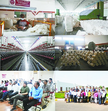 这两家纺纱厂分别拥有50万和35万纱锭,主要生产16s至40s纯棉纱、棉布以及家纺产品,在印度均属于大型纺企。两家企业引进国际先进纺纱设备,现代化程度以及管理水平超过国内许多纺纱企业。考察团在与印度纱厂交流中感到,印度纱厂在棉花成本、人工成本等方面具有优势,在中低支纱市场具有很强竞争力。但由于工人素质、生产率以及生产技术依然落后于中国,因此40s以上纱线的产量还较有限,竞争力依然弱于中国。