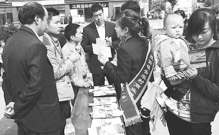 陕西镇安农村商业银行(筹)属陕西省首批开通电子银行业务的机构之一,该行通过广播电视、户外广告、发送彩页等形式大力推广此项业务,并结合助农POS业务、无线POS收贷收息业务等,使新科技走向社区。图为该行工作人员向市民介绍电子银行新业务。