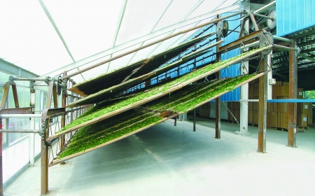 在这三天的采风期间,记者去了福鼎的很多龙头茶企,参观了茶厂、茶园、生态基地。透过车窗,远处漫山遍野的茶园,宛如无际的绿色海洋,扑面而来,掠过眼帘,迅速向身后退去。脚下的山路,也真应了那句“车到山前必有路”。忽然一转弯,“啊,左边有茶园!啊,那里也有!”点缀在山路间的茶园也总是突然出现,又一转就看不见了。向导向记者解释,福鼎茶树除了大面积的茶园种植外,还有很多就是这种“见缝插针”的种植了,可以更有效地立体应用山林的资源。当车行到一山顶,向导招呼我们下车,并指着相隔一个谷地的对面山顶告诉我们:“那是十三坪,从这里看去,可以看到13坪茶园。”在那海拔约700米的地方,强烈的日照,周围郁郁葱葱的树木、竹林,抬头仰望蓝天是那么高,远处是云雾缭绕的群山,而身后又有不知是雨水还是山泉形成的水塘。周围很静,一丝微风吹过,记者心中不禁感叹,这般仙境会长出怎样的茶啊?