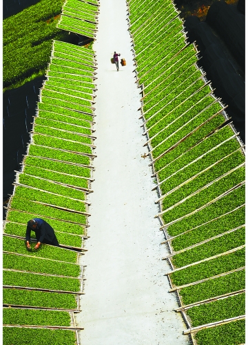 在下山的路上向导也不时向我们指出一棵棵长于石缝间的老茶树,并告诉我们:“这太姥山中,老茶树可不少呢。”下到山脚,长期疏于锻炼的记者已累得气喘吁吁,忽然发现山脚一家绿雪芽茶庄,立刻冲进店内大口喝下两杯茶水,顿时冒出一身汗来,浑身舒畅,遂心满意足奔向下段行程。向导一句话记者深以为是:“茶,还是要解渴啊!”