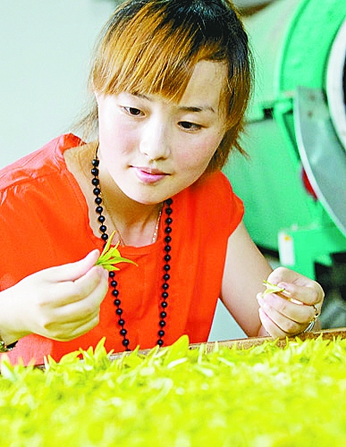 6月20日,位于福建霞浦崇儒乡生态有机茶基地采摘的黄叶特异茶茶青金黄亮眼。该茶叶新品系为福建省茶科所郭吉春研究员研发,2010年,福建金牡丹茶叶公司引种了100多亩,为全省引种面积最大。经过三年多的精心种植,获得成功。特异的茶系,制作出了特有的高档茶叶,增加了当地高品质茶叶的种类。