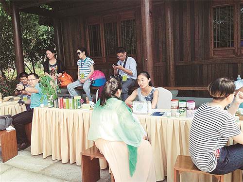此次品牌展活动是“中国茶业品牌与文创高峰论坛”的一部分。众多的入馆品牌中,艺福堂作为唯一的互联网茶叶品牌显得有些特别:清一色的现代玻璃茶具中展示着广受年轻人欢迎的西湖龙井、法兰西玫瑰、菊博士胎菊等,并且茶罐尤其特别,是可以种花的生态罐。