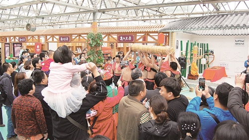 图1:安化黑茶的技艺表演吸引了众多观众。 赵光辉 摄