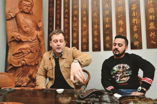 爱特说,闻一闻茶香,喝几口清茶,再用还不太熟练的中文和朋友们聊聊天,让他觉得安静,这是最近自己挺喜欢的一种休闲方式。他告诉记者,不同的茶有不同的味道,试过几种之后,最喜欢的是铁观音。