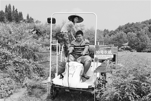 7月9日,在湖南省隆回县桃洪镇白竹村农田,该镇农机大户刘育华带领社员正在翻耕稻田。今年6月,他投入150万元购买了18台农业机械,带领5名村民成立了当地第一家农机服务专业合作社,推进农业现代化生产。合作社承租田土400亩,集中连片种植水稻,出租田土的农户既可向合作社收取租金,又可进合作社打工。农机合作社解决了当地多年来田土抛荒的难题,也提高了劳动生产效率。 罗理力 摄