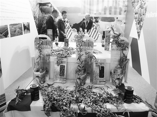 由成都市委、市政府主办的2016成都国际都市现代农业博览会12月1-4日在成都开幕。本届展会以“创新助推农业转型升级,品牌引领特色农业产业发展”为主题,设立成都主题馆及农业精品馆,包括国际农业合作、农产品进出口贸易、休闲农业与乡村旅游、现代农业科技与农业创新、农村电子商务、成都20个去(市)县精品农业展区、充分展示成都市现代农业发展经验,进一步提升成都休闲旅游地的知名度和美誉度。图为来自希腊的橄榄果。