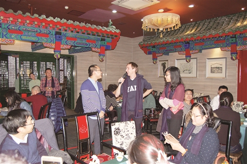 品鉴会落地在老舍茶馆,就是看中这里的地道北京味。来自捷克的留学生Honza Lorenc(中文名骆恒)通过微信知道这次品鉴会,虽然他的汉语还不过关,但抱着对中国文化、中国茶文化的浓厚情趣,他拉上中国同学做翻译也来到了品鉴会。品鉴会上,他欣赏了富于北京民间特色的四季茶表演,品尝了康记古树的两款茶,观看了茶友“心有灵犀”猜词互动游戏。见答题最快的3名茶友获得价值1350元的“金竹藏宝”茶礼一份,骆恒也有些跃跃欲试,怎奈语言关没过。康记古树为答谢国际友人的关注,赠送他一盒龙珠普洱,他如获至宝,笑逐颜开。