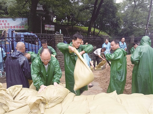 7月1日清晨,益阳市社党组书记、理事会主任郭年山带领机关抗洪抢险突击队,紧急增援桥南市场,市场商户也自发加入到抗洪抢险队伍中。虽然雨势不减,但大家团结一心、众志成城,争取在最短的时间内抢筑第二道防洪子堤。经过1个多小时紧张奋战,一段高1.2米、长25米的人工子堤坚实地阻挡了洪水的漫溢。