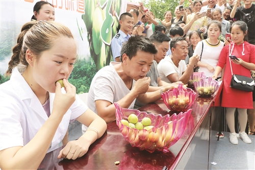 为了扩大销量、提高青脆李的知名度,余庆县社和当地政府还策划了大乌江镇首届李子采摘节。6月25日,众多游客齐聚关塘村青脆李果林,参加“漫山遍野寻果王”“火力全开大胃王”“硕果飘香来寻李”三项趣味活动。采摘、美食、娱乐,大家共同感受了大乌江镇加快电商扶贫的步伐,也感受到李子产业与乡村旅游产业有机融合带来的变化。