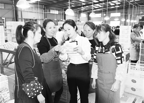 江西南丰农商银行充分利用蜜橘上市期间,橘农自办包装销售点遍布乡镇、村组的优势,积极组织青年志愿者深入村民密集的销售点,大力宣传新版人民币的防伪特征和识别方法,增强公众对新版人民币的认识和辨别真假能力。图为该行志愿者在艾源村销售点为群众讲解新版老版人民币特征。