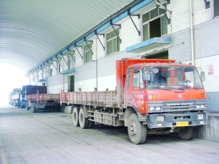 随着春耕用肥临近,湖北新洋丰肥业股份有限公司进入了产销两旺的局面,日产销各类肥料近万吨,前来公司拉肥的车辆络绎不绝。图为从各地赶来的货车在该公司硫酸钾成品库前等待装肥。董义华 摄
