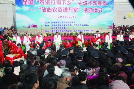 近日,全国“农资打假下乡”活动江苏现场和“放心农资进万家”活动仪式在江苏省泰兴市黄桥镇隆重举行。国家质检总局执法司副司长马雪冰,江苏省质监局副局长张亚青、省农委副主任王鹤平,泰州市副市长卢佩民和泰兴市市长高亚梓等领导出席。江苏瑞和化肥有限公司等企业向全国农资生产经营企业发出了诚信守法倡议。