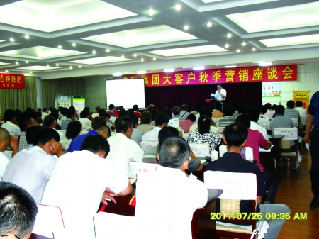 7月25日,威远集团大客户秋季座谈会在邢台九龙山召开,参会客户200余人。通过此次会议,客户对以“根力多”生物蛋白控释肥为代表的肥料有了更深层次的认识,掀起了空前的订购热潮,现场订货4400吨。