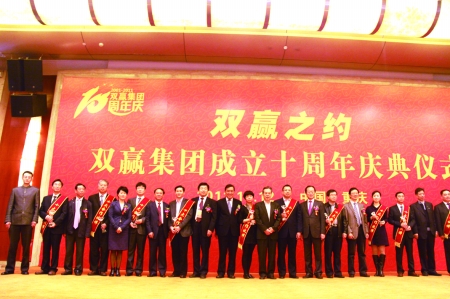 11月12日,重庆世纪金源大饭店的宴会厅里灯火辉煌、气氛热烈,每个人的脸上都洋溢着喜悦的笑容。当天,双赢集团成立十周年庆典在这里隆重举行。中国石油和化学工业联合会会长李勇武、重庆市人民政府副市长谭栖伟、中国农科院副院长唐华俊、中华合作时报社社长查迎新、中共重庆市南川区委书记谭大辉、农业部全国农技推广中心副主任栗铁申、中国磷复肥工业协会理事长武希彦等领导出席大会,共同回顾了双赢集团十年不平凡的发展历程,祝贺双赢集团所取得的辉煌成就,共同掀开双赢集团新的发展篇章。