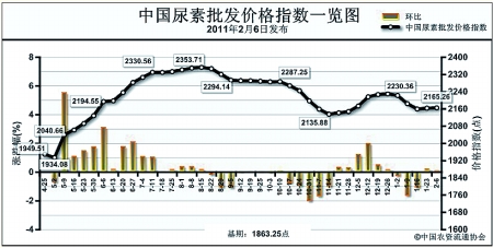 上周(1月30日-2月3日)国内尿素市场预期较好,价格上涨。2月6日中国尿素批发价格指数为2165.26点,环比上涨1.21点,涨幅为0.06%;比基期上涨302.01点,涨幅为16.21%。节后,指数呈现上涨趋势。