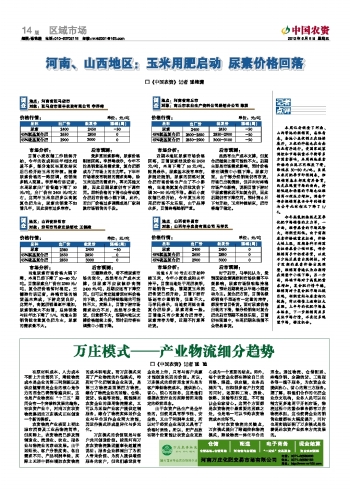 河南、山西地区:玉米用肥启动 尿素价格回落