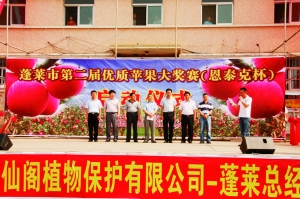启动仪式上,据蓬莱市人大常委会副主任幕庆和介绍,蓬莱已成为烟台苹果的著名产区,目前苹果种植面积超过32万亩,总产值达12亿元,优质果率达到80%以上。今年举办第二届大奖赛的目的是进一步促进果农加大对苹果质量的关注度,提高优质果率,引导蓬莱果业向着高产、优质、高效、生态、安全的目标前进。烟台众德集团所倡导的优质高产套餐种植作物管理方案,被蓬莱的广大果农所认可,为果农的丰收作出了贡献。下一步,蓬莱还要转变种植理念,更新种植模式,加快新品种、新技术的推广和普及,进一步提高蓬莱苹果质量,让蓬莱的苹果走向全国,走向世界。