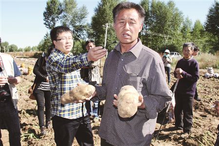 在河北省沽源牧场管理区,鞠文河承包的700多亩地中有20亩前茬除草施用了农药氯磺隆。按照以前的经验,除草剂残留一定会影响马铃薯发育,亩产仅能达到1000斤。经徐刚伟邀请的雷力农化服务技术人员的技术指导,通过施用雷力根旺(海藻活性促根剂)、极可善以及雷力2000等调节、保健产品,不但解除了药害,最终亩产能够达到3440多公斤,每亩为鞠文河增加6000多元收入。雷力技术员为了让鞠文河看到差异,特别在田间保留了除草剂药害处理区域与原生对照区域作对比,由于雷力产品中的活性物质刺激作物的应激能力而快速生长,解除了因除草剂而抑制的光合作用。在随机选取3.3米长的马铃薯垄,对照地块测产结果为有效株36株,大薯块15个,重量2.6公斤;小薯块26个,重量1.8公斤。处理地块测产结果为有效株35株,大薯块55个,总重量达16.3公斤;小薯块16个,重量0.9公斤。鞠文河算是对雷力农化服务心服口服了。而就在他的田块旁边,是一位来自邯郸的农户承租的土地,由于不太相信徐刚伟推荐的雷力海藻肥产品,坚持采用传统耕作技术,其种植的马铃薯受到晚疫病影响,植株发育不好。记者现场挖出3株15个薯块,有5个因晚疫病而腐烂,5个因薯块太小无法进入市场,其余发育正常,仅1/3可以作为商品销售到市场。徐刚伟一直在劝他尽快销售减少损失。